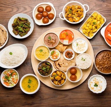 Tasty Thali – A wholesome Indian meal featuring 4 soft chapatis, comforting dal, one rich curry sabji, one flavorful dry sabji, creamy raita, and fragrant rice. A perfect balance of taste, nutrition, and tradition — all served together for a satisfying, homely experience.